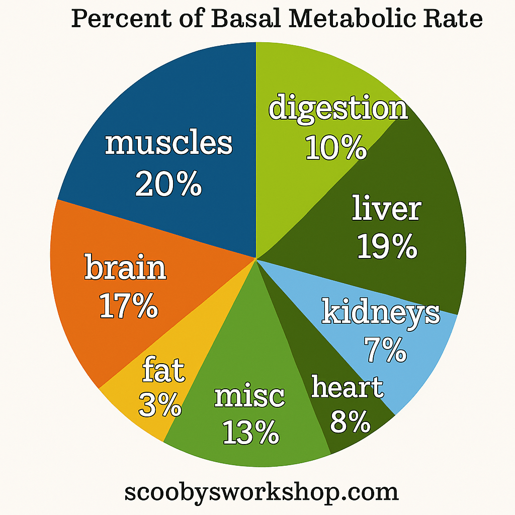 This is extremely interesting because it turns out that if you are using that 1 kg of extra muscle for training that 1kg of muscle will burn an additional 20-40kcal depending on intensity (moderate to intense training).